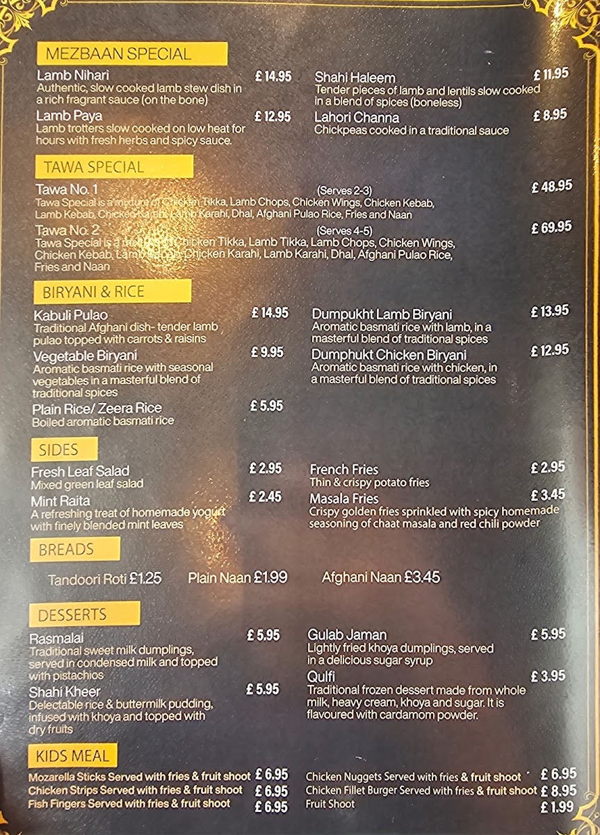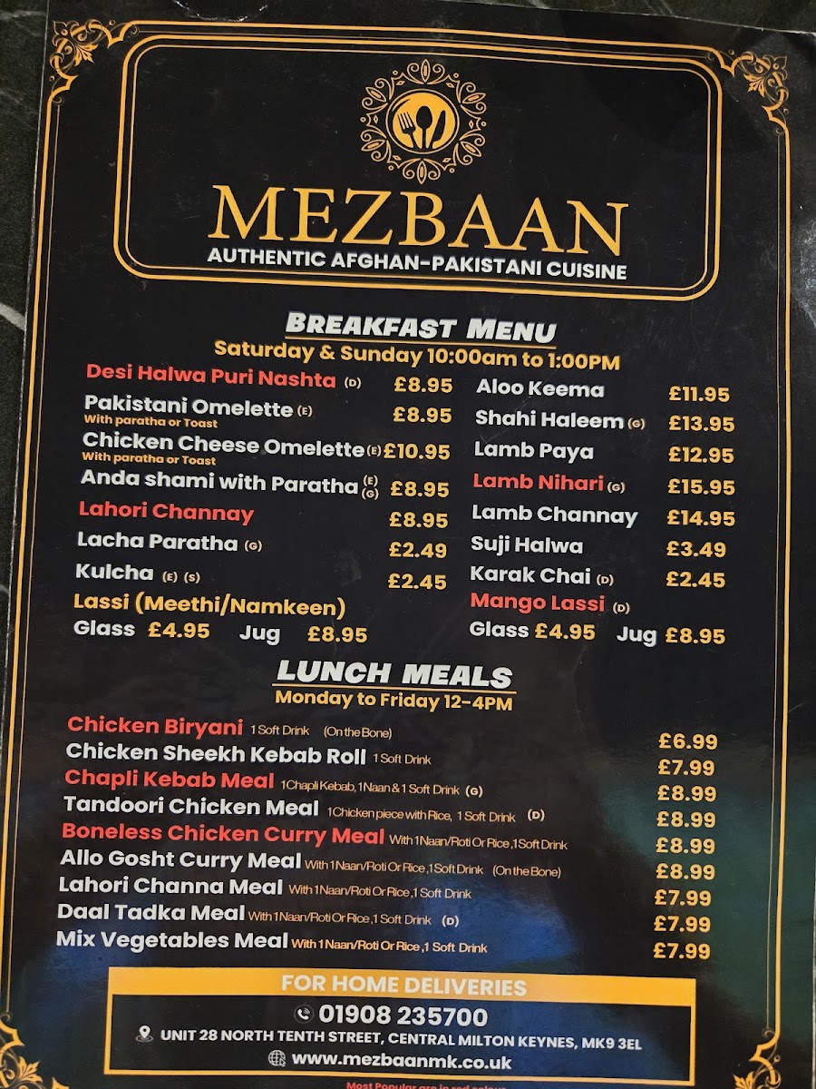 Welcome to Mezbaan Restaurant, a hidden gem located at 28 N 10th St, Milton Keynes. This vibrant eatery specializes in authentic South Asian cuisine, offering a menu that delights the senses. Dive into their aromatic Kabuli Pulao (£14.95) or savor the comforting flavors of Vegetable Biryani (£5.95). The Dumpukht Lamb and Chicken Biryanis are must-tries for every meat lover.